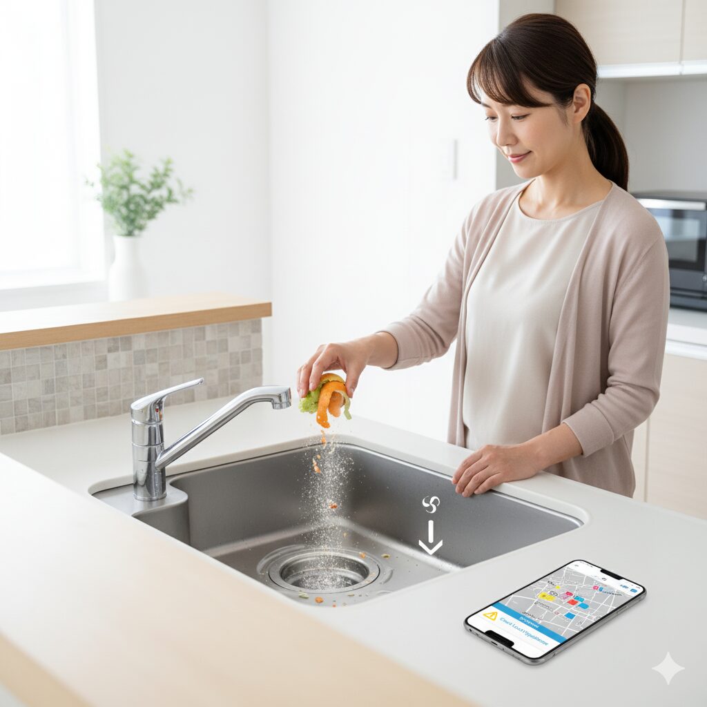 生ごみ処理に関連する機器には、ディスポーザーと呼ばれるものもあります。ディスポーザーとは、シンクの排水口に直接設置して、生ごみを粉砕して水と一緒に下水に流す装置のことです。ディスポーザーはごみをその場で処理できるため非常に便利ですが、導入にはいくつか注意点があります。まず、下水道の設備がディスポーザーに対応している必要があるため、設置できる地域が限られます。また、粉砕された生ごみが下水管を詰まらせる可能性があるため、自治体によっては使用が推奨されていません。さらに、ランニングコストとして水道代と電気代がかかります。そのため、手軽に導入できる生ごみ処理機と異なり、事前に自治体の許可や設置条件を確認することが大切です。